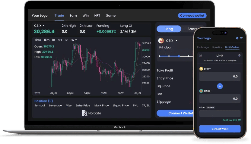 Perpetual Orderbook DEX allows traders to engage in derivatives trading with leverage and perpetual contracts. The DEXs we build come with advanced risk management, funding rate, and deep liquidity pools, allowing users to trade futures within DeFi seamlessly. The model also paves the way for advanced DeFi trading strategies.